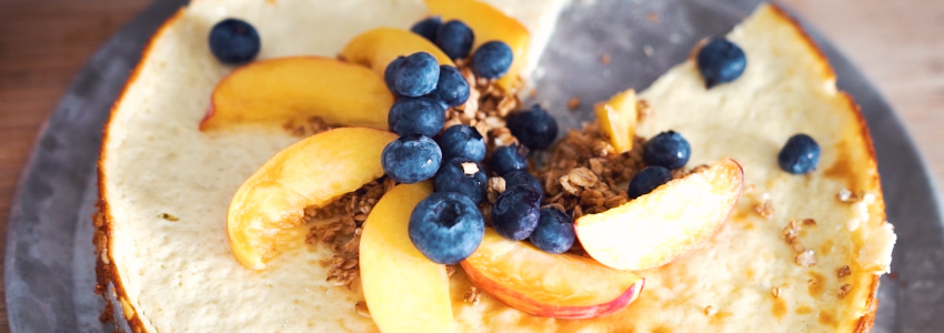 When it comes to toppings, I used peaches, blueberries and granola in the video here. But it’s totally easy to customize the cheesecake to your specific tastes! So experiment with different combinations to find your all-time favorite.