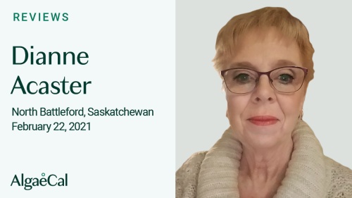 And just before I turned 60, my doctor said it was time to start doing some bone scans and tracking that. And in 2016, we were quite shocked to see the levels of my bone density were slipping badly. And my doctor is all about me doing things naturally and so I was on a product called Bone MD at that time and I thought well, let's give it a year and see if I could improve it on my own. And there was small improvement but not, it was negligible. And then about that time I found AlgaeCal and I thought you know, I found it online and they were saying that you know, give us a chance from one bone scan to the next and if you don't see any improvement we'll give you money back. And I thought, you know, if a company will stand behind their product like that, it's worth a try. And the medicines involved with osteoporosis are not cheap and I was willing to make that investment in myself and do the self care. So over the course from 2017 to 2021 I've seen a 15% increase in bone density, which is impressive. Needless to say, I don't have to ask for a refund and I will keep on using it until I'm back to normal which I'm very, very close I'm within well now I don't have to have a DEXA scan for two to five years. And my risk of breakage is under 10% so they're giving me really good scores. I'm within point nine of being normal and I'm thrilled. So I just wanted to let anybody else know that if you're looking for a product and willing to invest in yourself, this is the product to try.