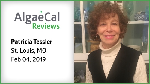 Hi, my name is Patricia Tessler and I am from St. Louis, Missouri, and thought I would just give you a little summary on the journey that I took in trying to figure out what to do about my bone density. This all started about 10 years ago, and my gynecologist, my regular doctors told me that I needed to be careful because I was at risk because of some of the tests that I had done, for bone density and each year it got worse. And each year I tried to do all the right things. I was eating well with calcium rich foods. I was, exercising, lifting weights, but each year the bone density was getting worse. I was told that if I have a fall, it would really be very serious. Then I heard about Algae Cal, just kind of a fluky thing on the radio. And I happened to see a presentation by Dr. Oz. And I thought, well, it wouldn't hurt to try it. So I tried it. I even gave all the information to my doctors and they were not in favor of me doing it, but I said, I'm gonna to do it, it can't hurt. And so we, I took the Algae Cal for nine months, went back in, had the testing done, and the report said that my bone density had gone up significantly. Actually 5.8% in total. So I am here to say, I am staying on the Algae Cal. I will continue to do my exercises and lifting weights and doing all the right things. But I will tell you nothing really worked until I used Algae Cal. So thank you for listening.