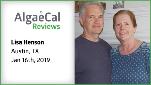 Hi, my name's Lisa Henson. I just turned 58 years old and I started taking AlgaeCal probably about four years ago. And after a year of taking it, I was due for my bone density exam. And my T-score was not exactly where it should have been or where my doctor would have liked it to be. So I was told to take more calcium and maybe do some weight-bearing exercises. I did this for another year. Unfortunately, the T-score was still not where it should be. So at that time, I added Strontium Boost to the four AlgaeCal pills a day I was taking.