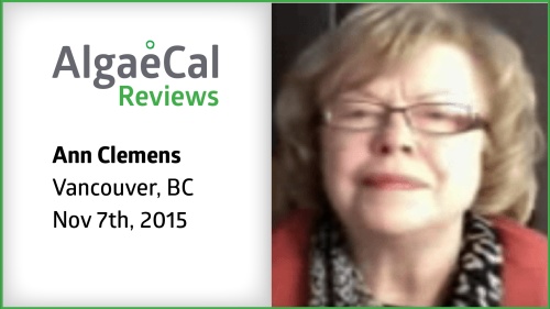 My name is Ann from Vancouver, Canada, and I am happy to endorse the AlgaeCal program.